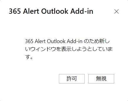 メール送信時とOutlook Add-in設定メニュー表示時に毎回ポップアップが表示されます