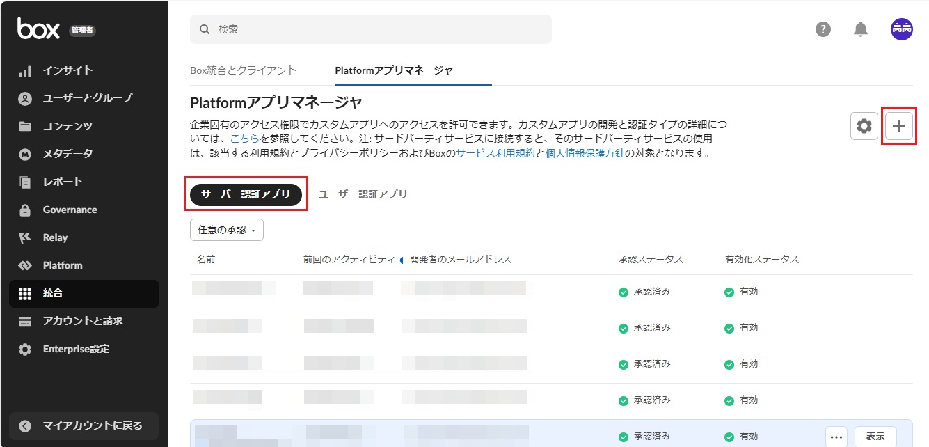 以上で、Boxでのカスタムアプリの追加は完了です。