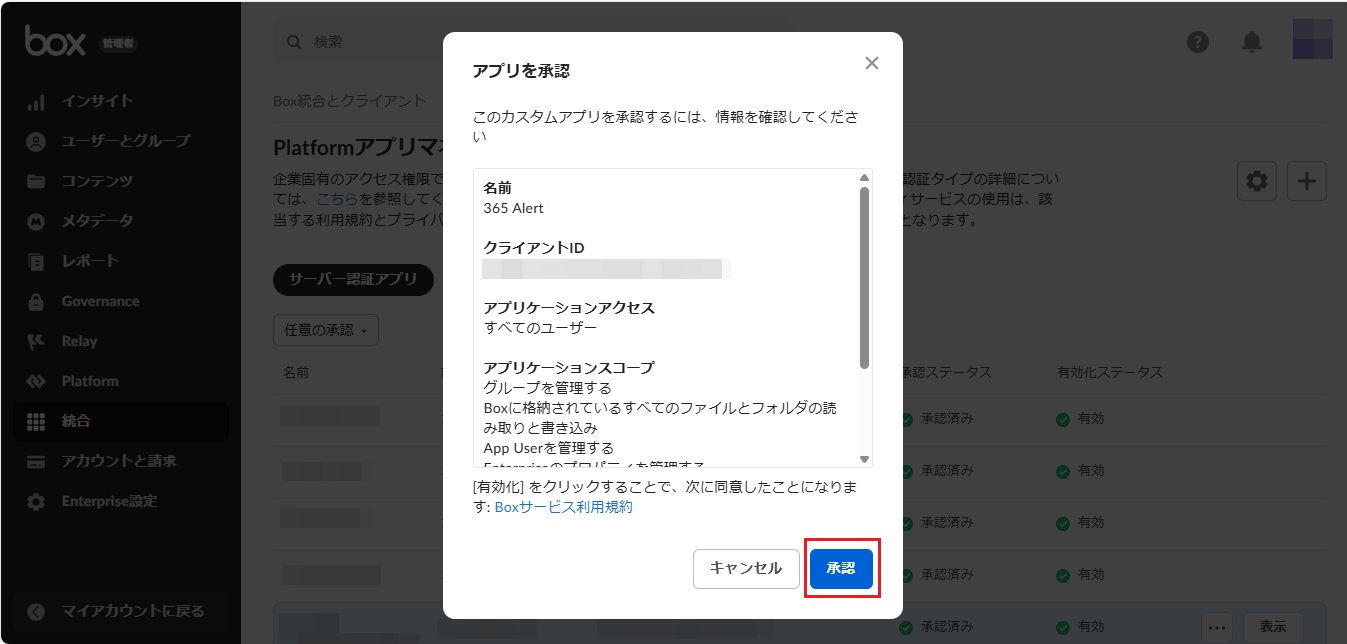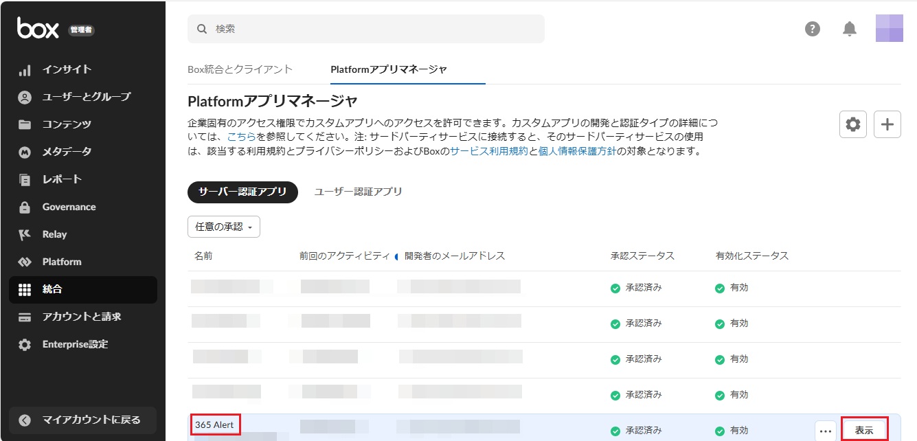 以下ではBox上で365 Alertのカスタムアプリを追加する手順を記載します。