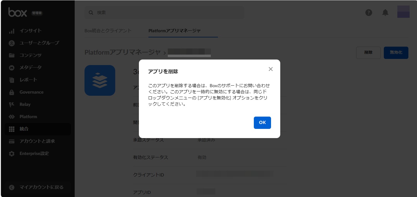 以上で、Boxでのカスタムアプリの削除は完了です。