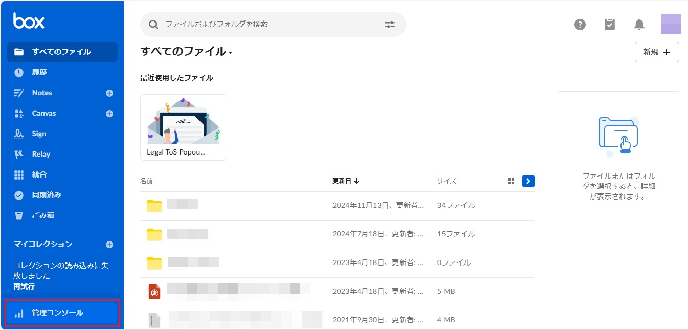 Boxに管理者アカウントで、以下のURLからサインインします。