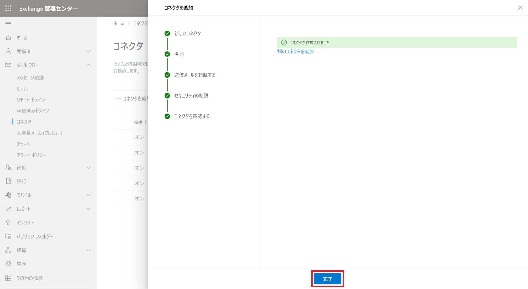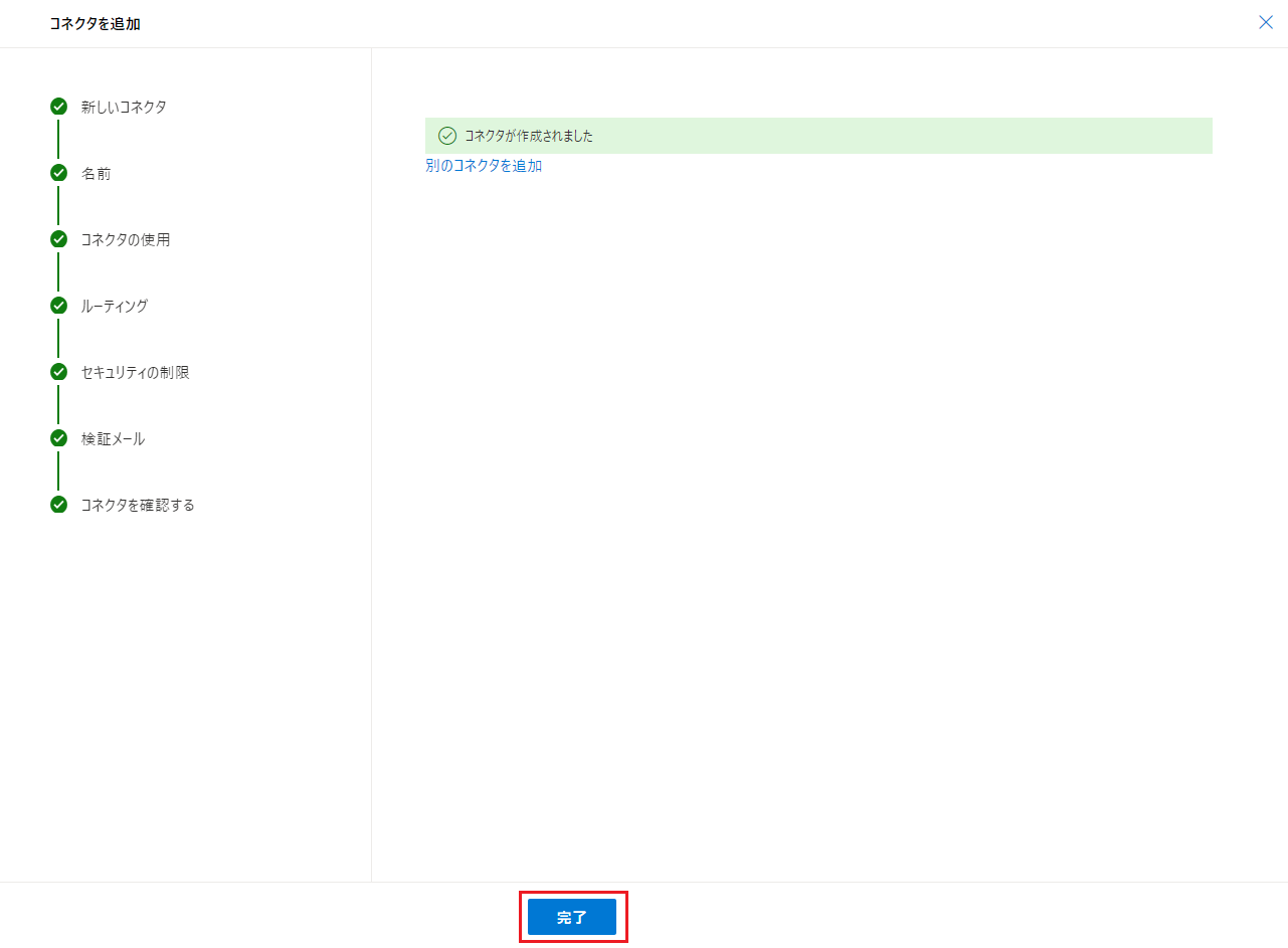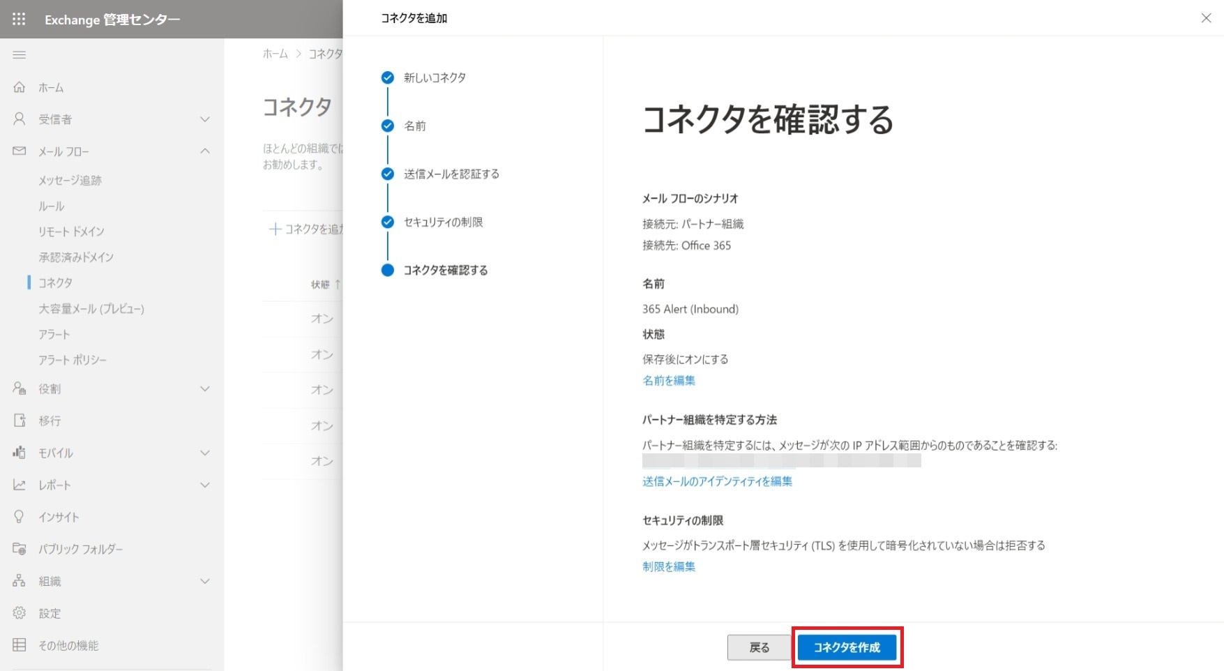 以上で、365 Alert (Inbound)コネクタの作成は完了です。
