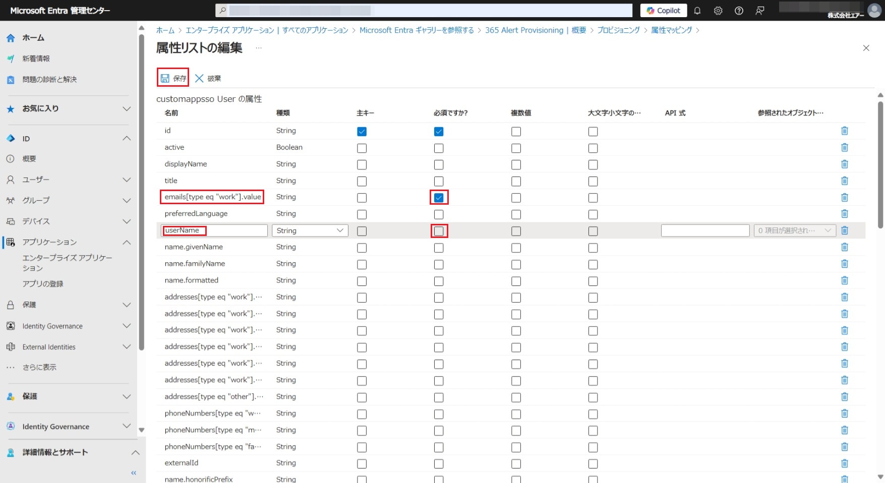[保存]をクリックして属性マッピングを保存します。
