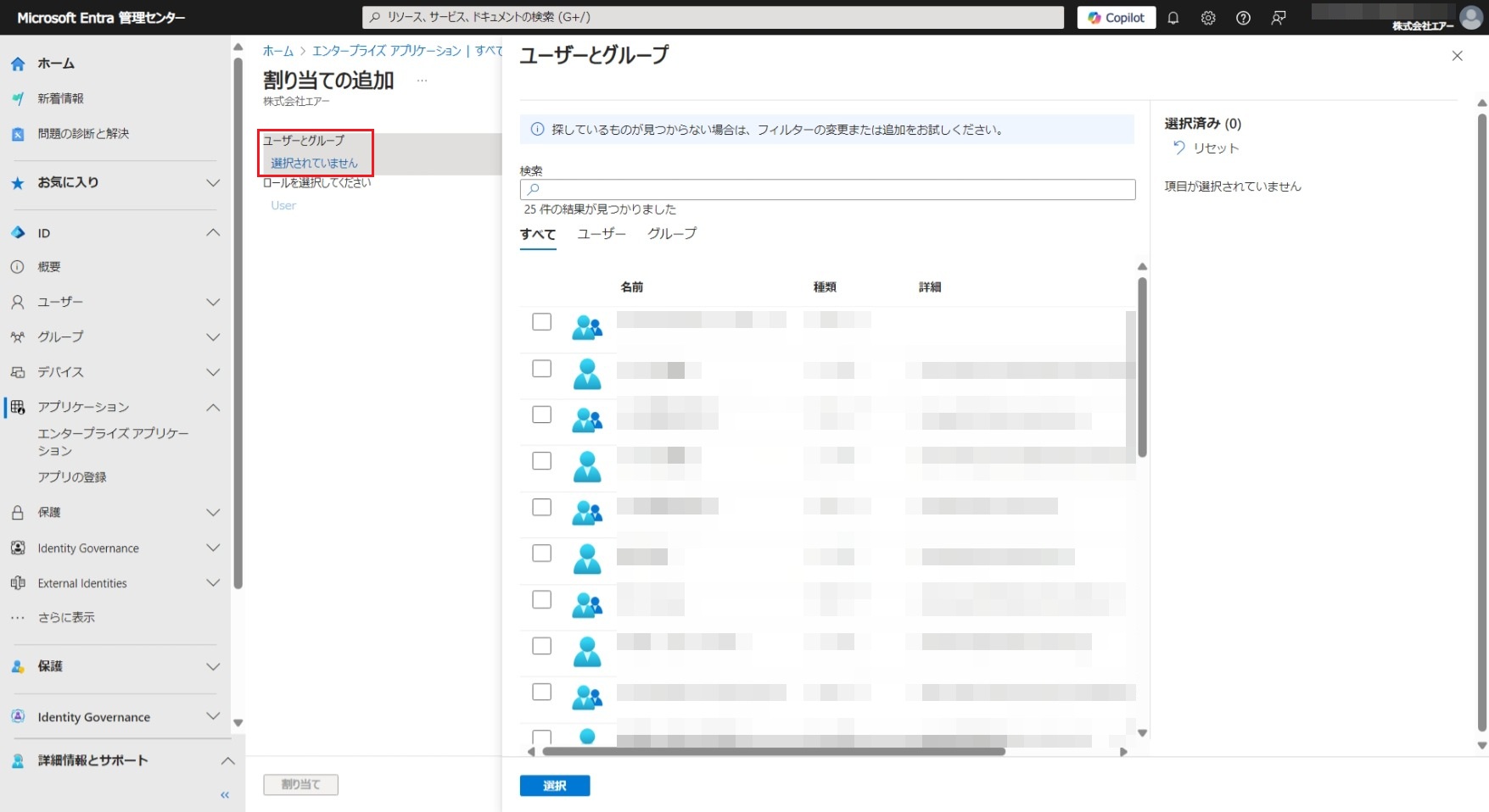 申請したドメインのユーザー以外を選択すると、同期処理時にエラーが発生して、同期処理が止まってしまう可能性があります。note入れ子のグループは、Microsoft Entra ID(旧称Azure AD)でサポートされていないため、指定出来ません。