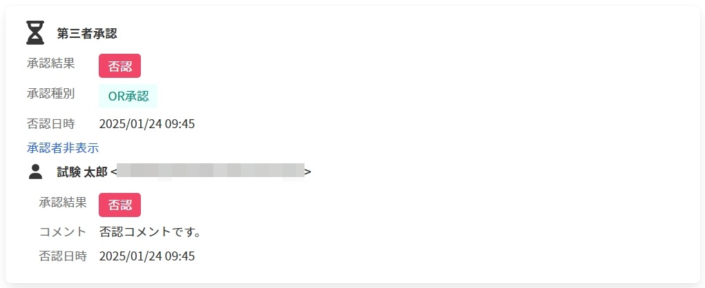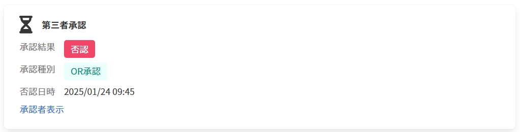 承認者情報(承認/否認日時)該当承認者が承認または否認した日時が表示されます。