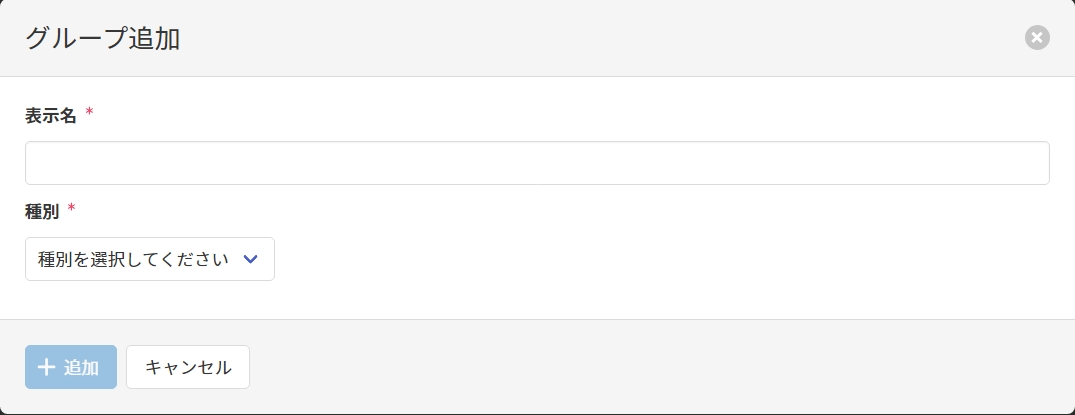 グループ追加画面で以下の項目を入力し、[追加]をクリックしてグループを追加します。