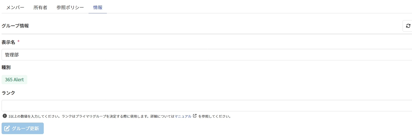 以下の項目を更新し、[グループ更新]をクリックしてグループ情報を更新します。