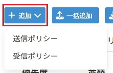 [追加]をクリックし、送信ポリシーか受信ポリシーかを選択すると、対応する送受信種別のポリシー追加画面が表示されます。
