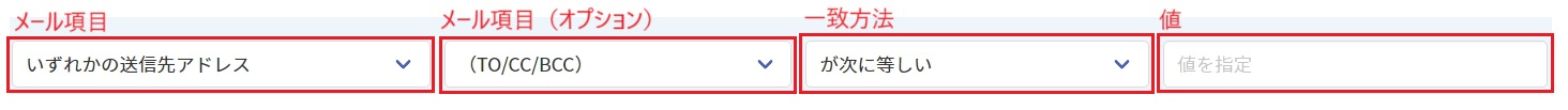 例えば、いずれかの送信先アドレスドメインが外部ドメイン(条件)の場合に上司CC(アクション)を実行する、等です。